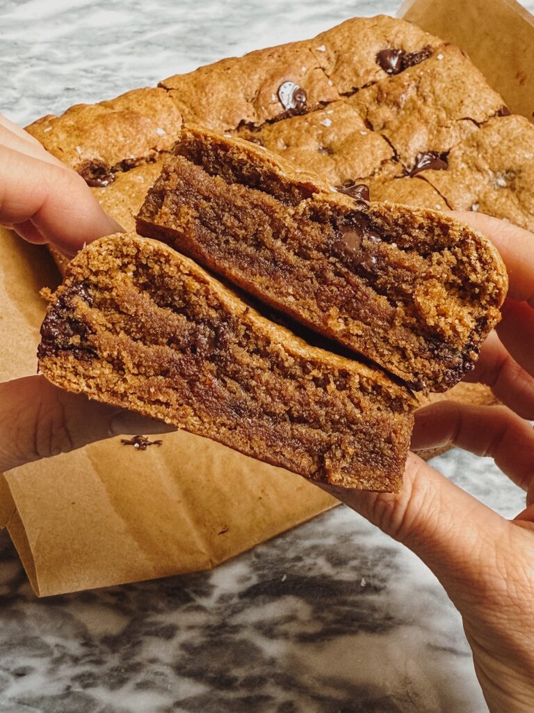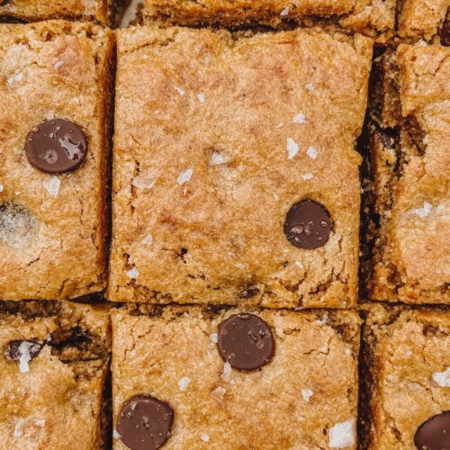 I have a real, deep love for brownies and so it makes sense that their sister dessert, blondies , would also be a favorite. It’s basically a chocolate chip cookie into a brownie form.. what’s not to love? These salted blondies are also free from dairy, gluten, and refined sugar (if you use certain chocolate chips!) so they’re definitely healthier than the traditional and, in my opinion, taste ever better. They have a gooey, toffee-like flavor from the coconut sugar and a slight nuttiness from the almond flour. But the flaky salt on top just sends it right over the edge!